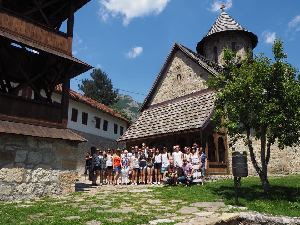 What an exciting full day in Čačak! We started off the day with some sightseeing around various historical sites learning about the history of this region in Serbia. This included a stop in the middle for a delicious traditional Serbian lunch. We then had the pleasure of performing alongside some amazing local kolo groups on a beautiful outside stage to a courtyard full of locals. The highlight of this performance being that it was broadcast on national Serbian television. After the show we had an awesome evening hanging out with our new kolo friends in Čačak – Mara Blucher.