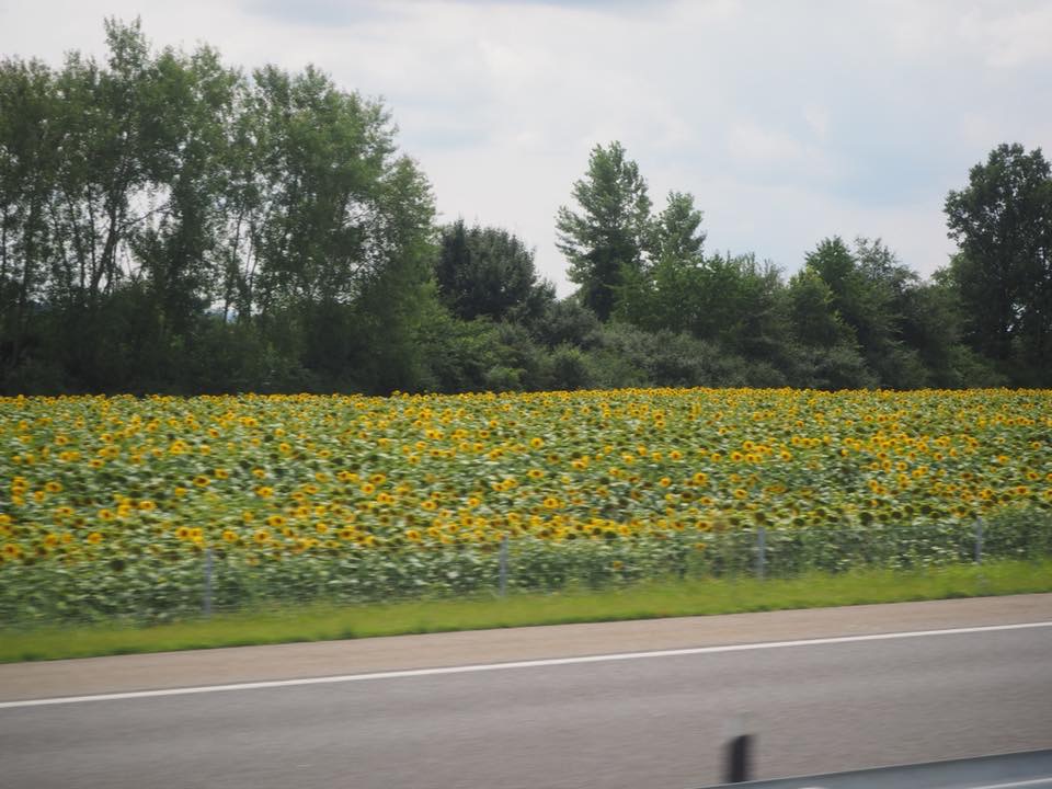We left Kragujevac for a long bus journey to Pula. We passed from a lush fertile landscape to the coastal ‘karst’ landscape made of white rocks like limestone, with very thin soils. From crops such as sunflowers and corn we saw olive trees near the coast. Grapes were one thing in common to both places!