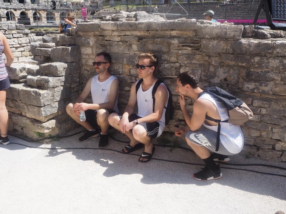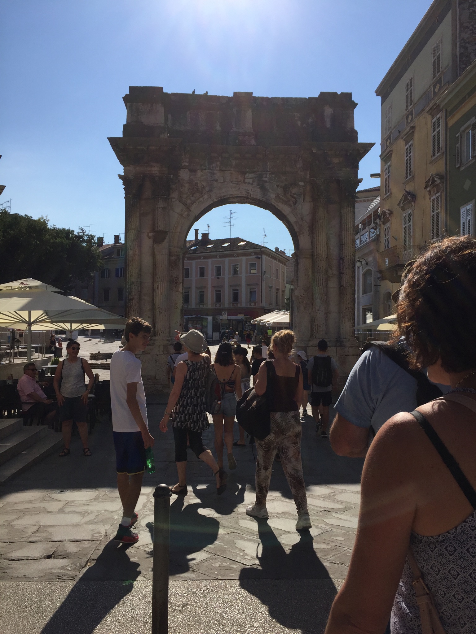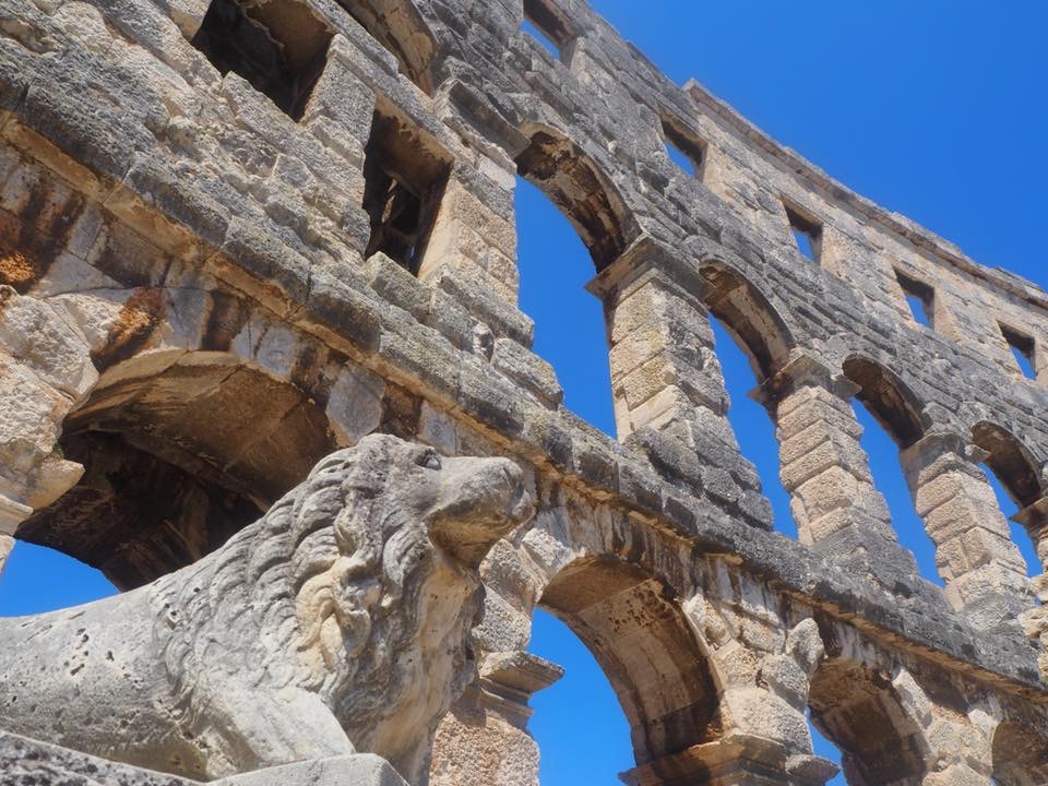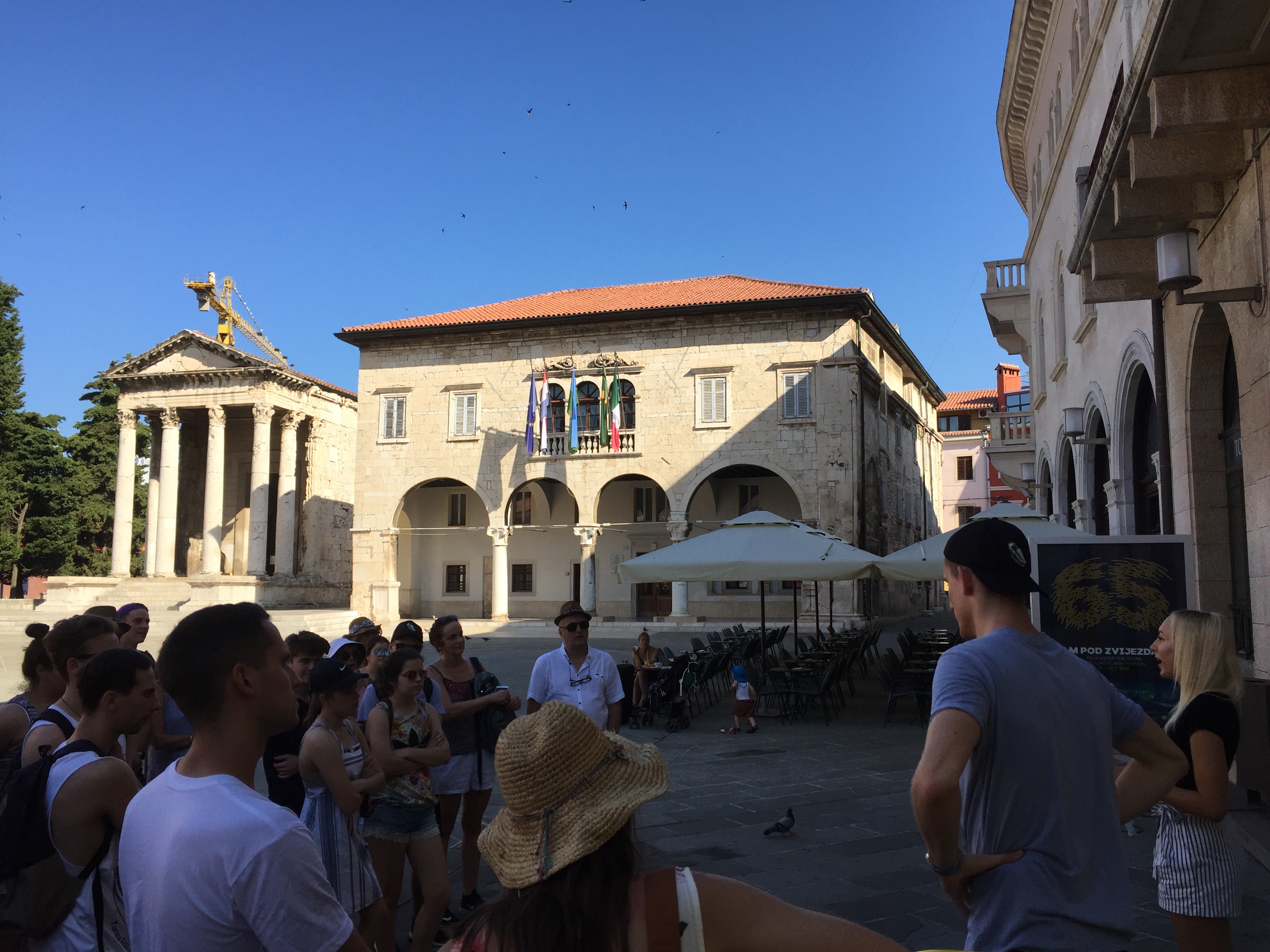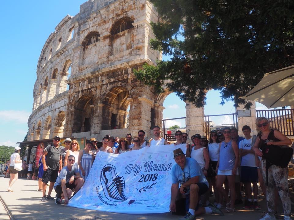 Our first day in Croatia has been absolutely amazing!!! We are in the beautiful Pula in Istra. Our morning was spent partaking in a lovely walking tour through Pula town which included a visit to the spectacular Pula Arena, a colosseum from Roman times. This was very welcome after being on the bus for 12 hours the previous day. The increase in temperature has also been very noticeable and the clear blue sea has been a welcome sight. In the evening we performed our first concert here in Croatia in Vodnjan. Photos from the concert in our next post – Mara Blucher.