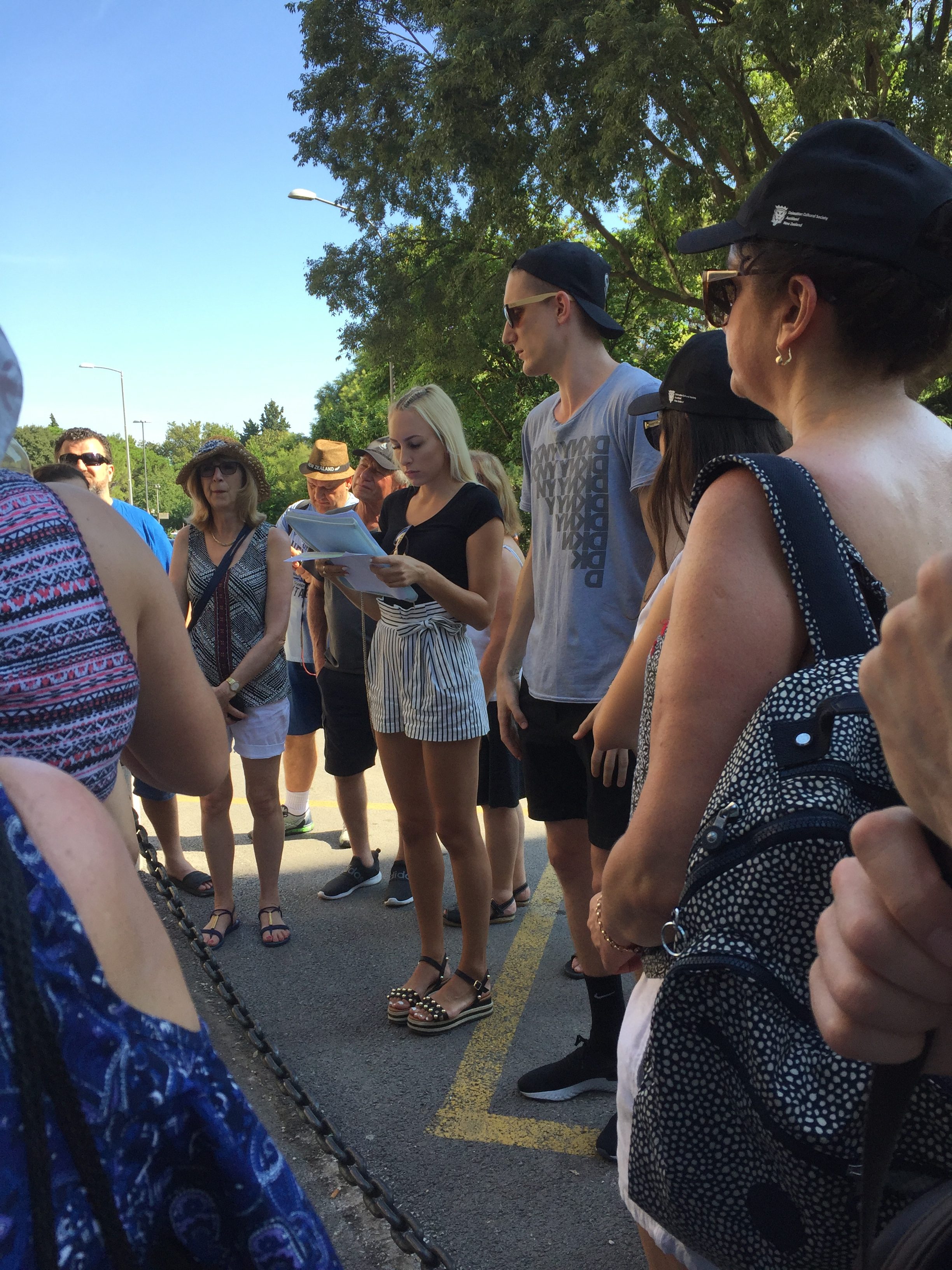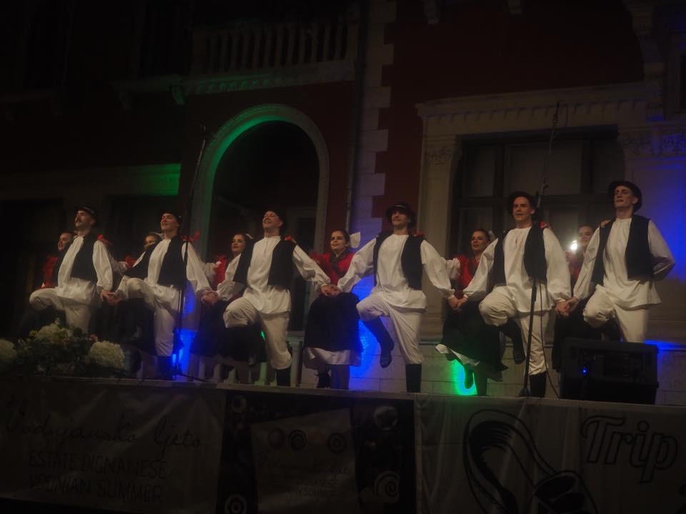 Our first performance in Croatia was absolutely amazing! We got to perform on a massive outdoor stage in the middle of the big and packed town square in Vodnjan. We performed a full show, dancing five choreographies alternating performances with the local kolo group. This was awesome but also very hectic as we only had one dance between performances and had to get changed extremely quickly. All our performances were introduced in three different languages: Croatian, Italian and English. The lovely Vanya Piacun who does all our MC’ing in New Zealand took on the role of taking care of the English introductions. It was nice hearing a familiar voice on stage before performing. What was amazing about this show was the response of the audience, they were clapping and cheering the whole way through while we were dancing and also singing along to the old music while we were dancing the New Zealand Dalmatian Kolo. After the show we had a beautiful meal before all passing out ready for another big day tomorrow – Mara Blucher.