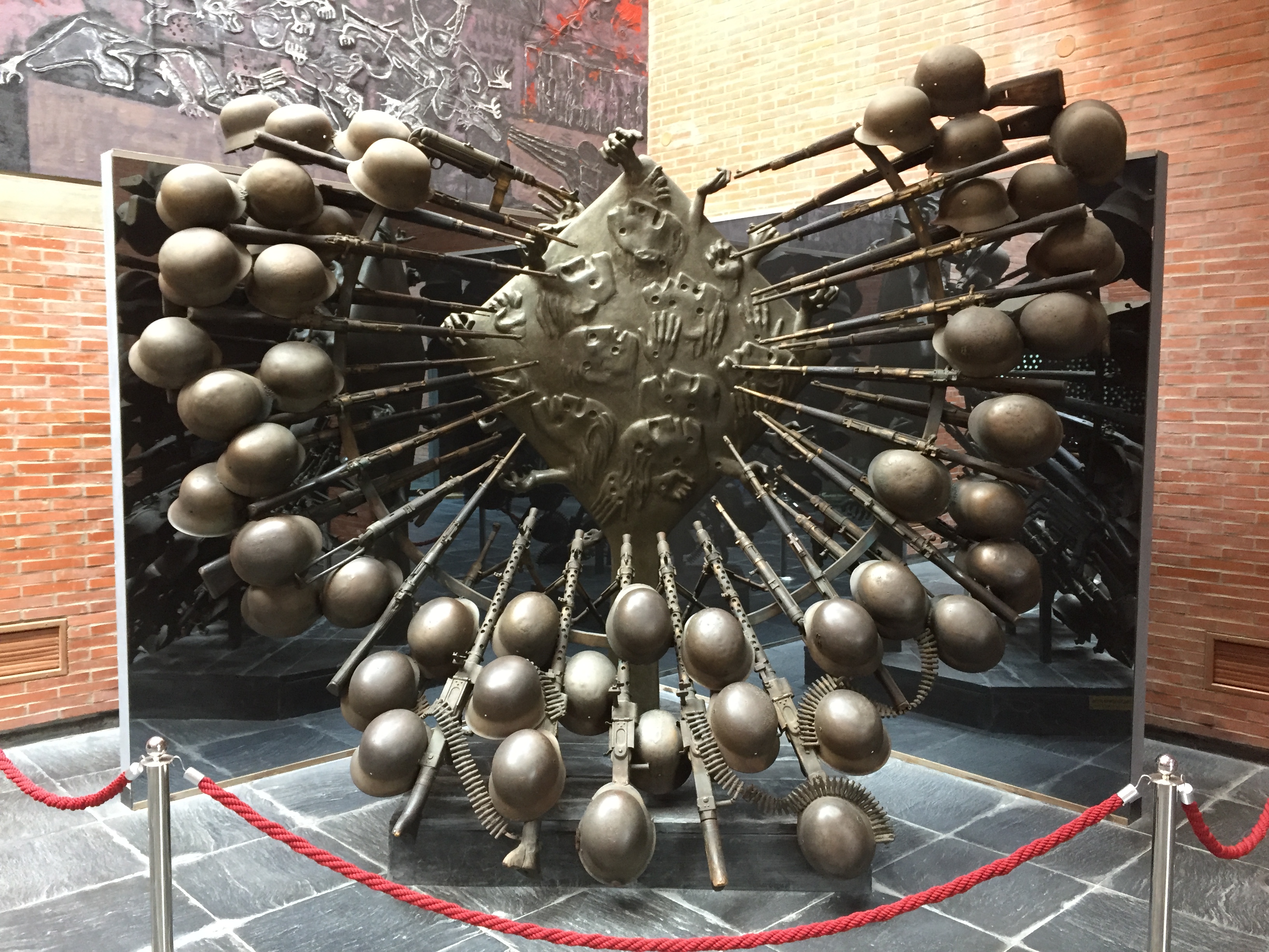 One special memorial in the park was to students and teachers from the local high school. Though some escaped there were about 300 students killed. One teacher whose students were killed was offered an escape but refused, saying “Go ahead and shoot, I am still  conducting my class.” We were then taken to the school and shown a classroom where some of the students were, which is set up as a memorial.