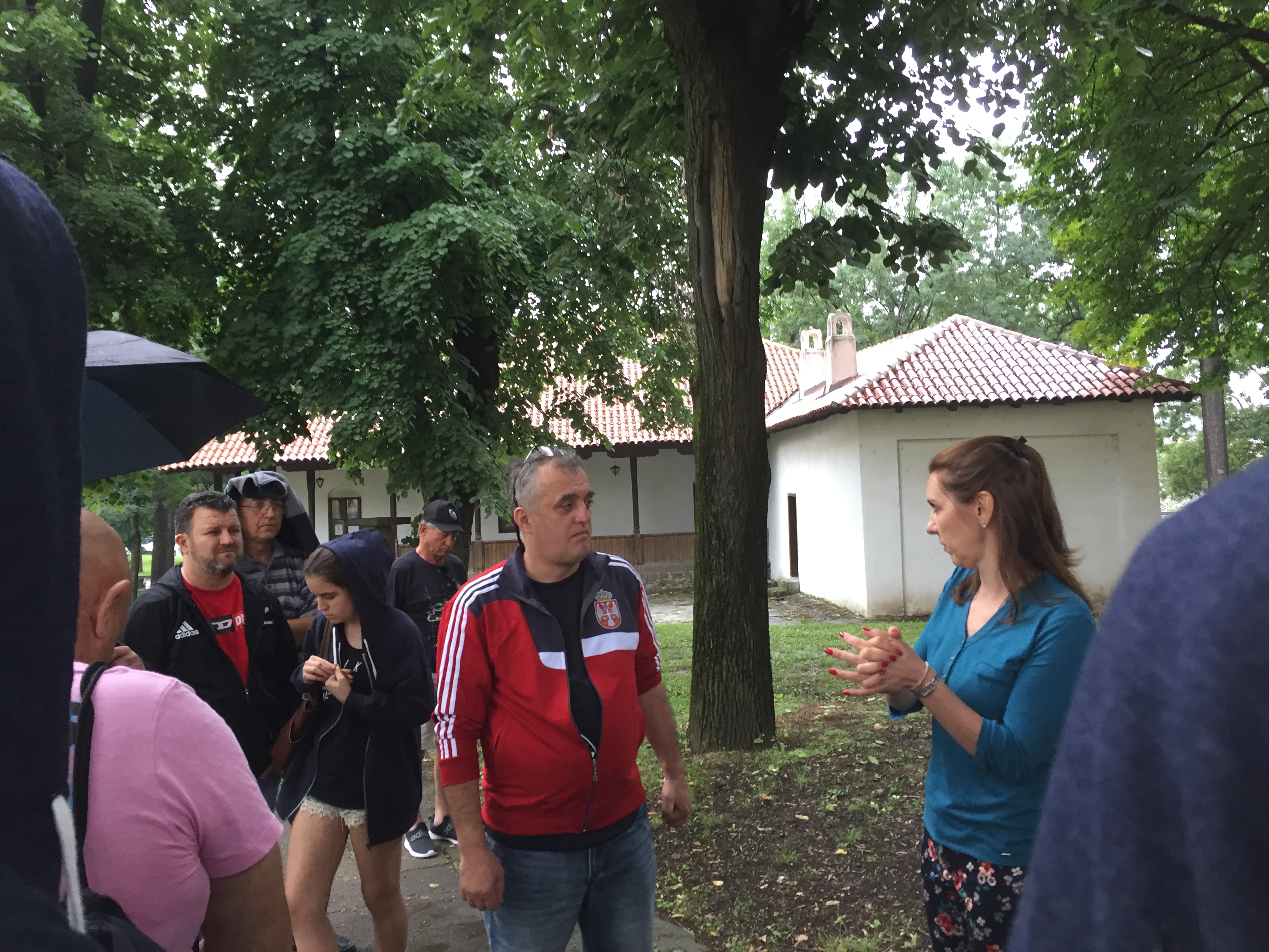The first performance of the trip was in Kragujevac and it was a real honour to perform at Nenad’s folklore club, and to see him perform too. We had a practice at the club in the evening and saw Nenad practice with his old Kolo teacher (we got to see where we got his teaching style from). Additionally, we got a taste of the temperatures that we will be preforming in (very hot).