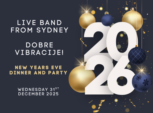 🎉 New Year’s Eve at the Dalmatian Cultural Society NZ 🎉 Ring in 2026 with great company, incredible music, and a feast to remember! Join us for a night of celebration as we welcome Dobre Vibracije, the fantastic live band flying in from Sydney to get the dance floor pumping with all your favourite hits. Enjoy a delicious Dalmatian buffet dinner, great music, laughter, and the best of our community spirit as...